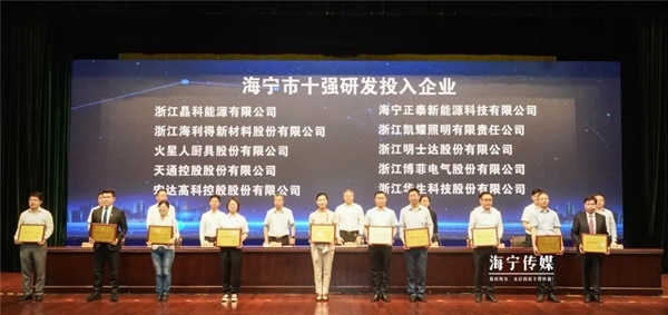 宏達高科被評為海寧市十強研發投入企業