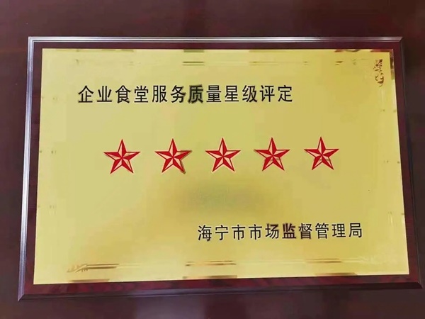 2021年7月,宏達高科食堂獲海寧市市場監(jiān)督管理局頒發(fā)的2020年度企業(yè)食堂服務(wù)質(zhì)量五星級評定。