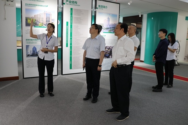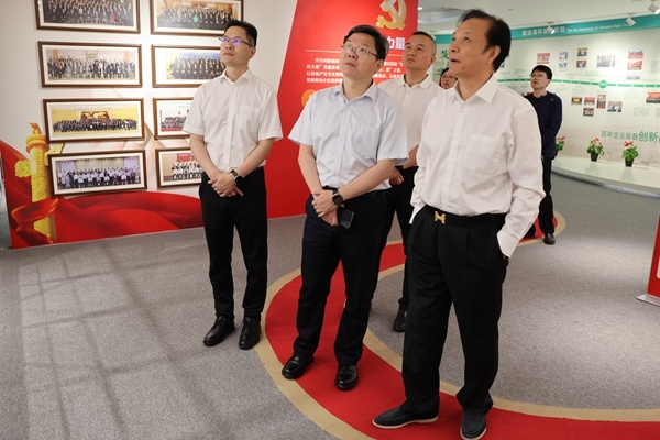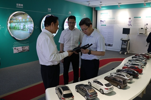 在宏達高科,徐明良書記一行參觀了公司展廳,聽取了沈國甫董事長關于公司當前生產經營和創新發展情況的介紹。