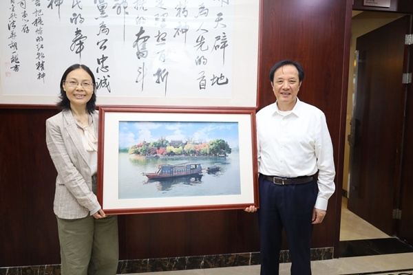 隨后,經濟管理學院副院長薛憲方向沈國甫董事長頒發浙江理工大學工商管理碩士(MBA)培養指導委員會委員的聘書;徐穎云書記向沈國甫董事長贈送其在學校的“經管印記”。