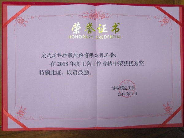 宏達高科工會被評為鎮2018年度工會工作先進集體