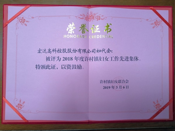 2019年3月6日下午,許村鎮(zhèn)在龍渡學(xué)堂舉行紀(jì)念“三八”國(guó)際婦女節(jié)109周年表彰大會(huì)暨基層?jì)D聯(lián)“五項(xiàng)全能”擂臺(tái)賽啟動(dòng)儀式。會(huì)上,許村鎮(zhèn)對(duì)2018年度十佳優(yōu)美庭院示范戶、十佳最美家庭、優(yōu)秀村(社區(qū))婦女組長(zhǎng)、婦女工作先進(jìn)集體和先進(jìn)個(gè)人進(jìn)行了表彰,宏達(dá)高科控股股份有限公司婦代會(huì)被評(píng)為“2018年度許村鎮(zhèn)婦女工作先進(jìn)集體”。